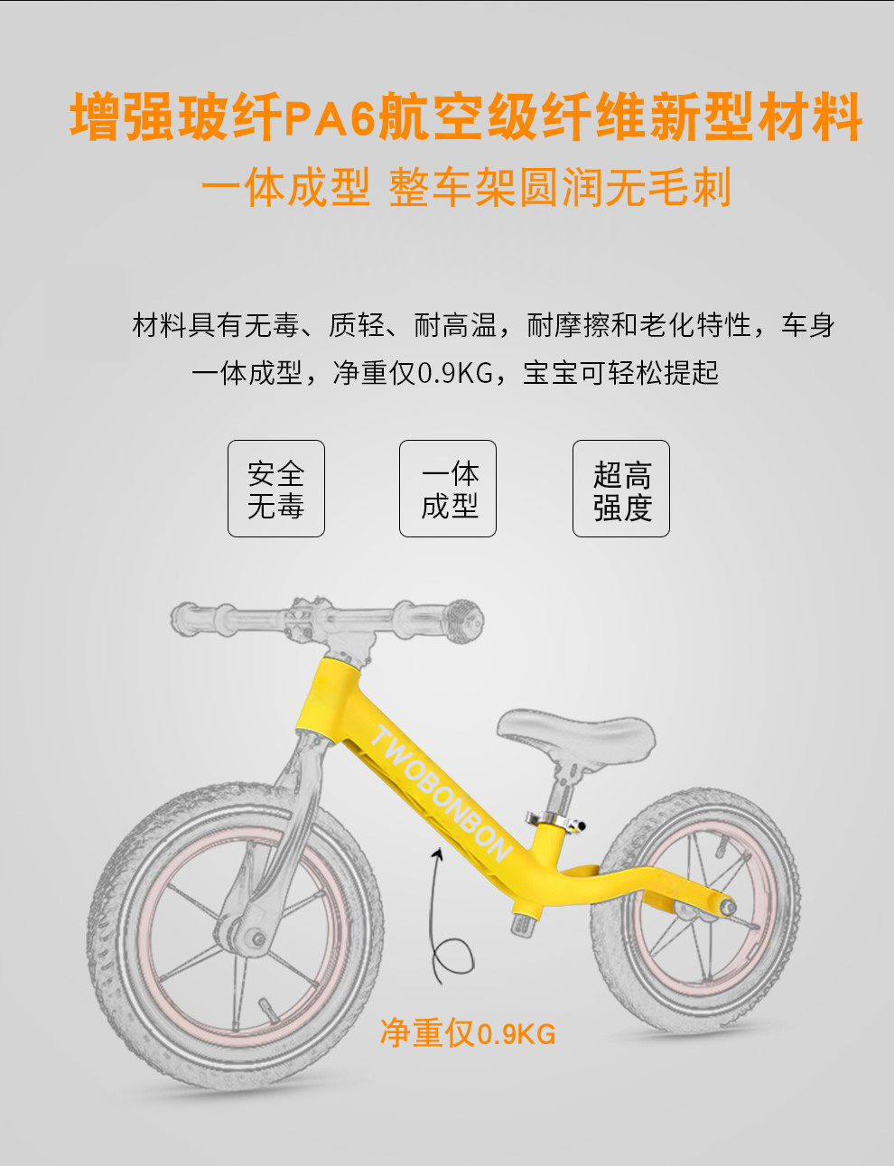 TWOBONBON(两粒糖)儿童平衡车2-6岁滑步滑行车12寸无脚踏自行车超轻款