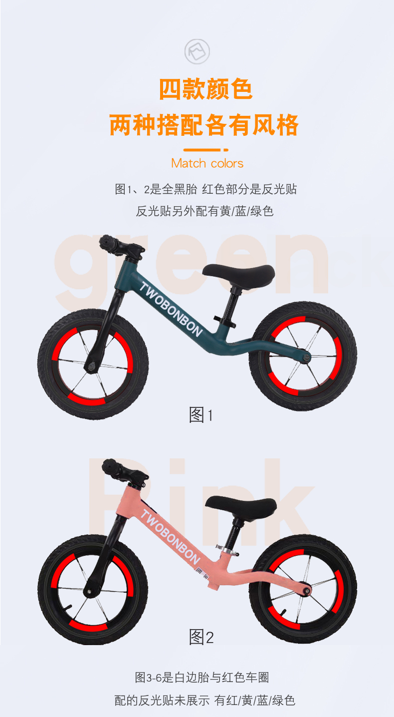 TWOBONBON(两粒糖)儿童平衡车2-6岁滑步滑行车12寸无脚踏自行车超轻款 数量