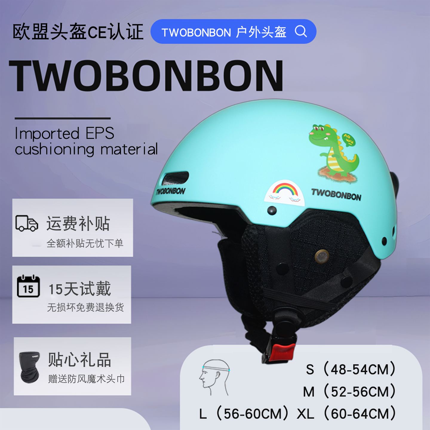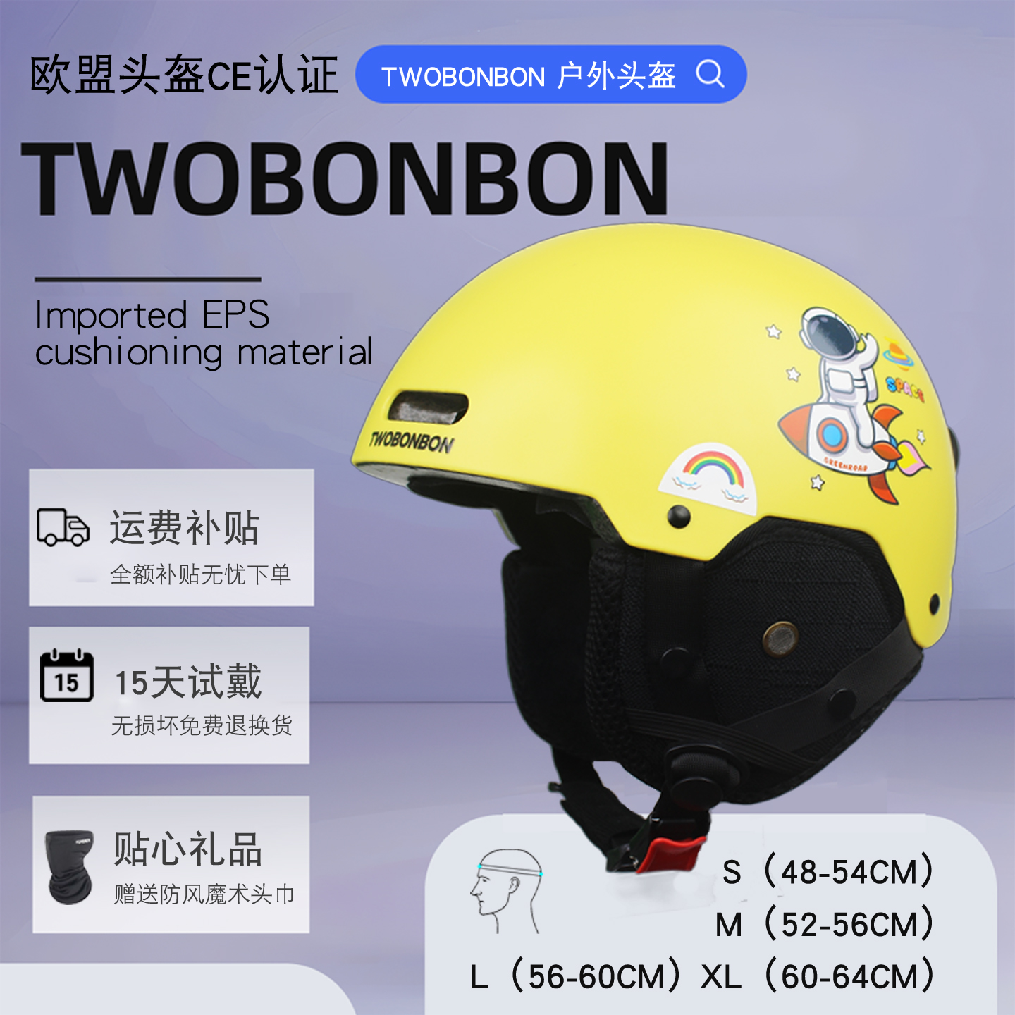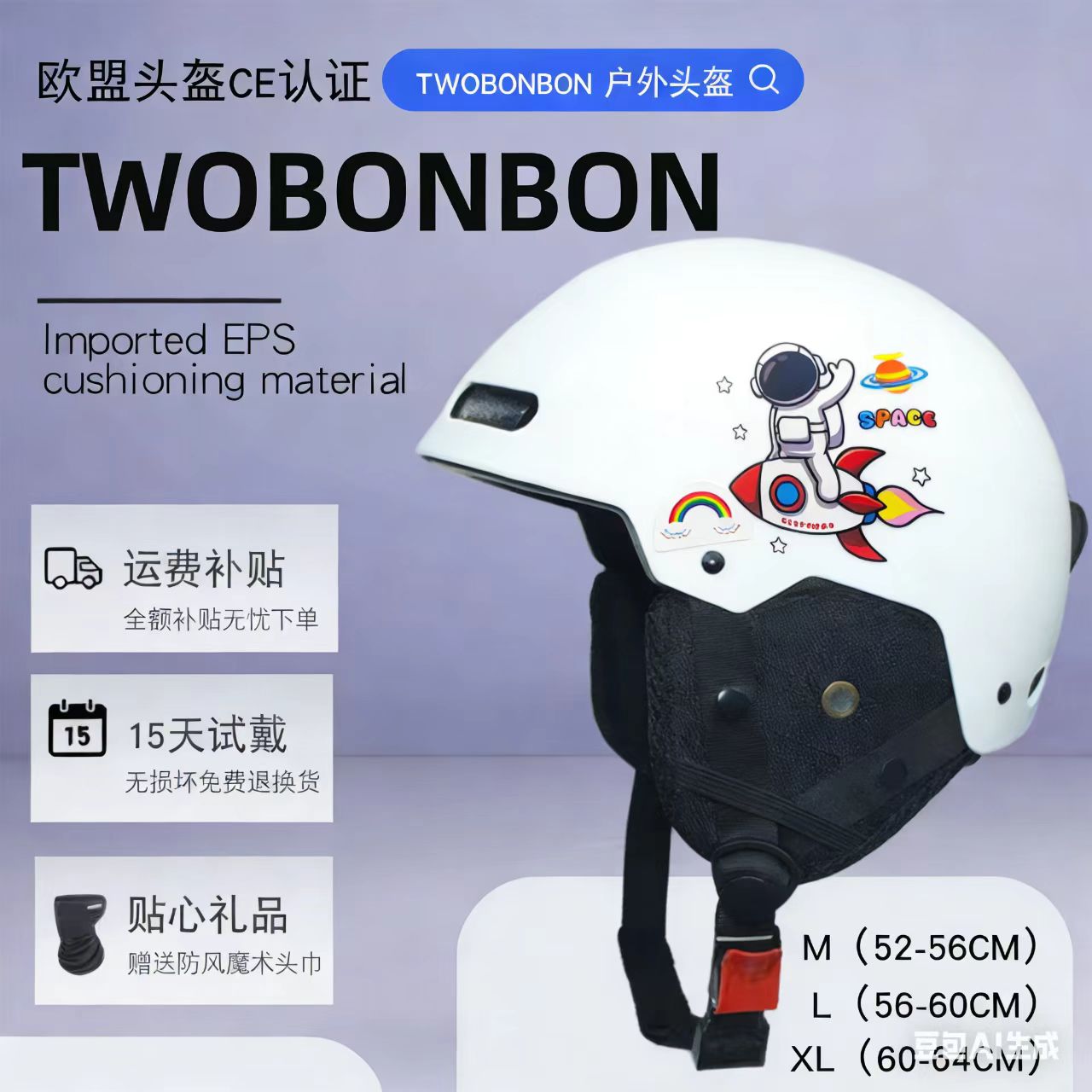 TWOBONBON四季通用专业滑雪头盔双板雪盔冬天保暖男女一体成人儿童安全装备 数量