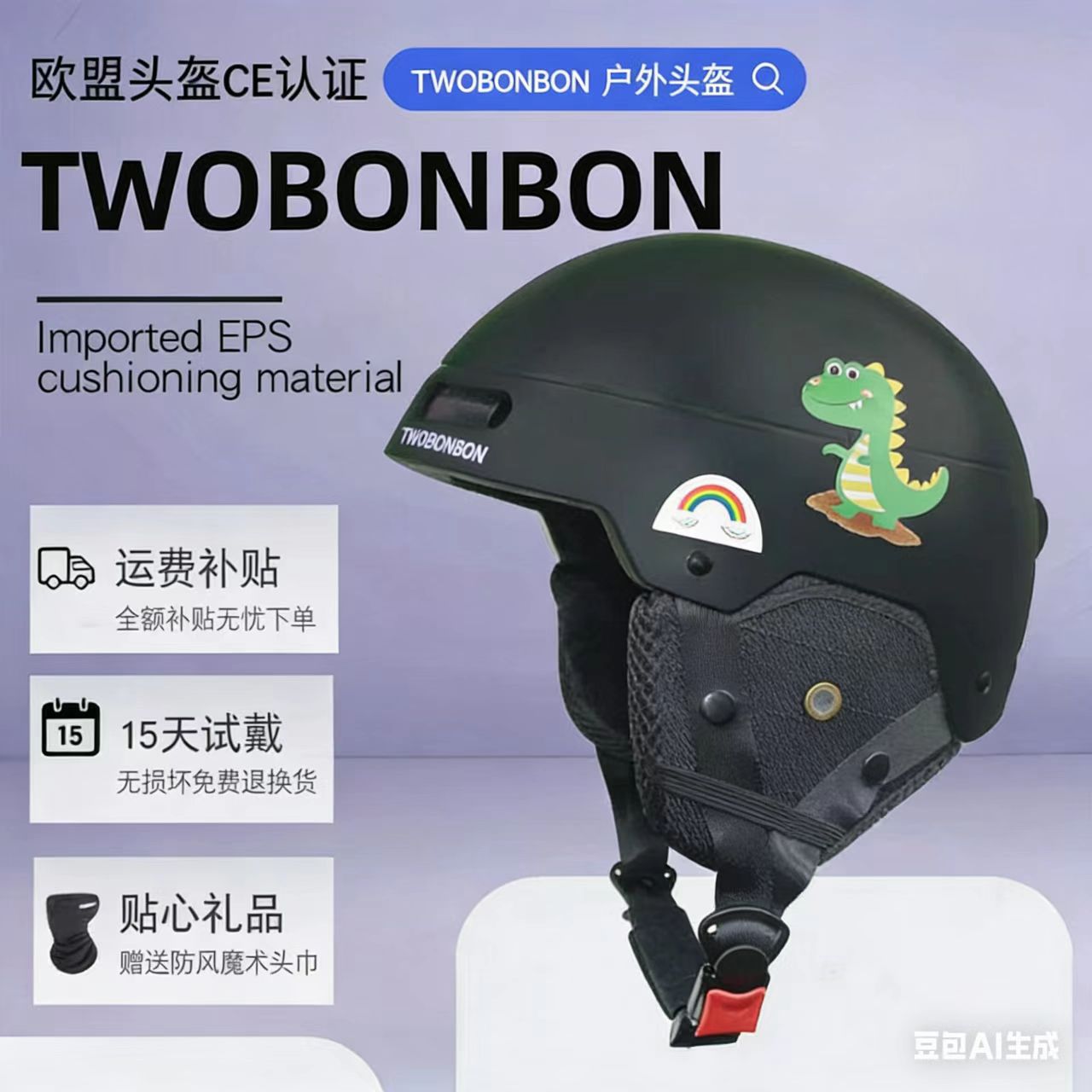 TWOBONBON四季通用专业滑雪头盔双板雪盔冬天保暖男女一体成人儿童安全装备