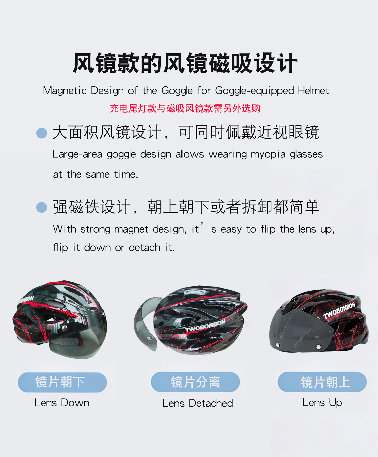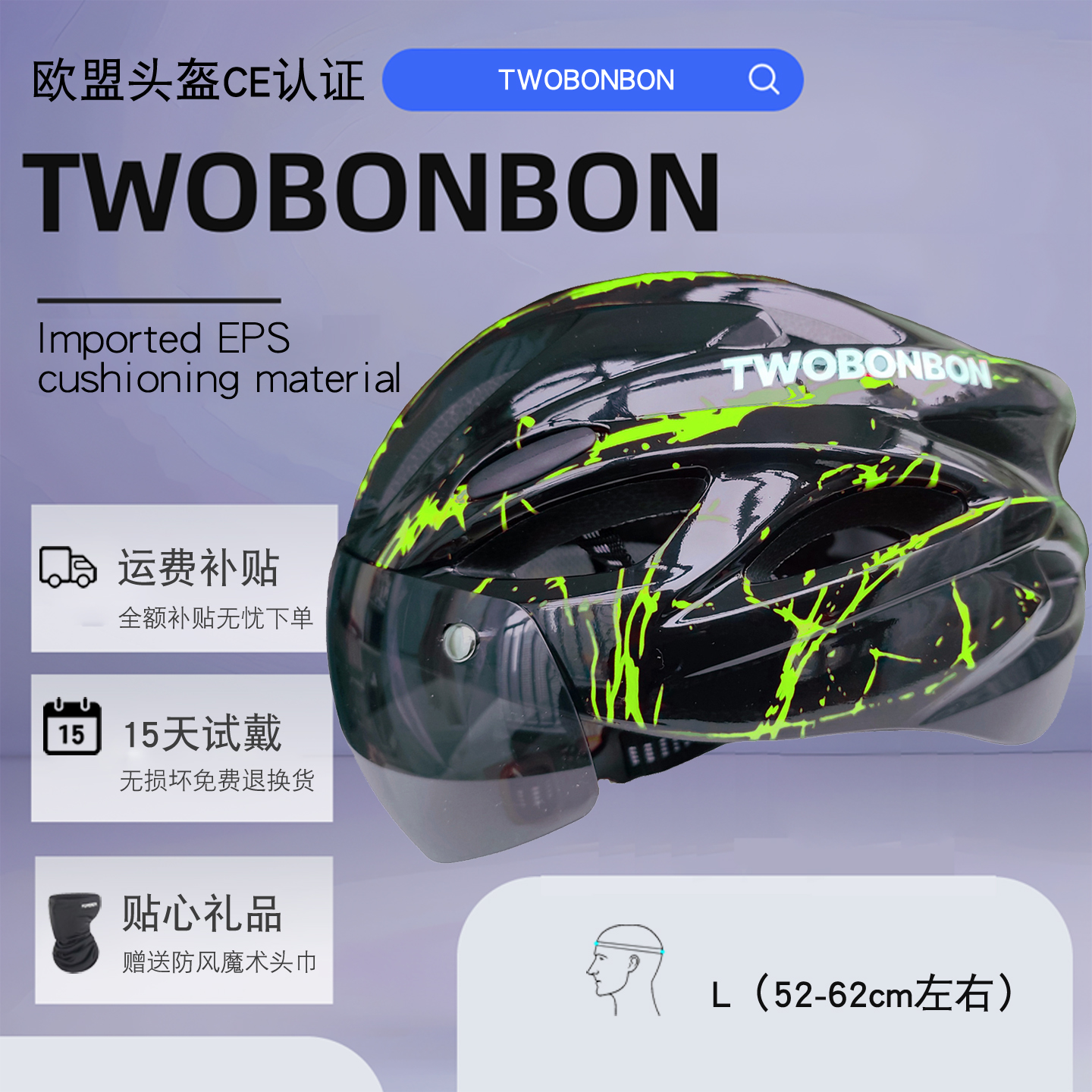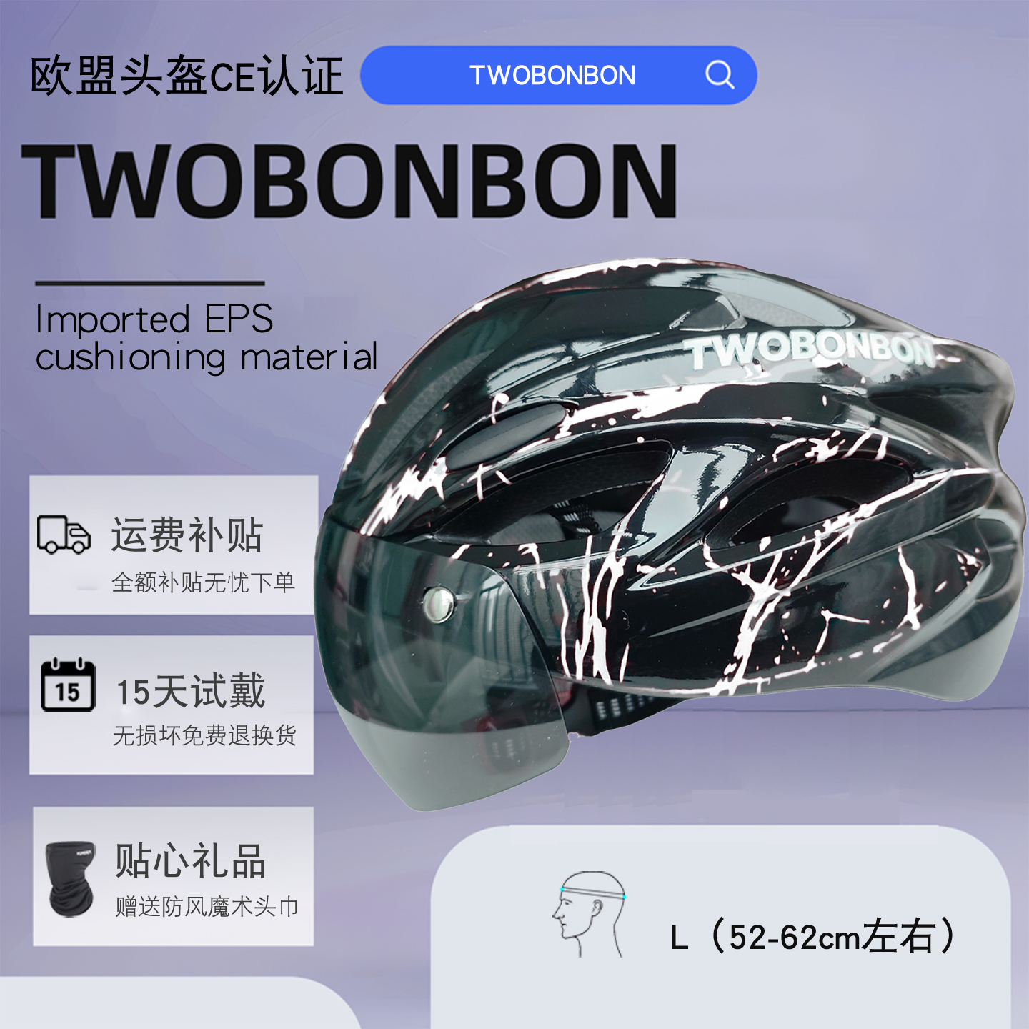 TWOBONBON户外运动安全防风滑板陆地冲浪板轮滑自行车骑行头盔带风镜款