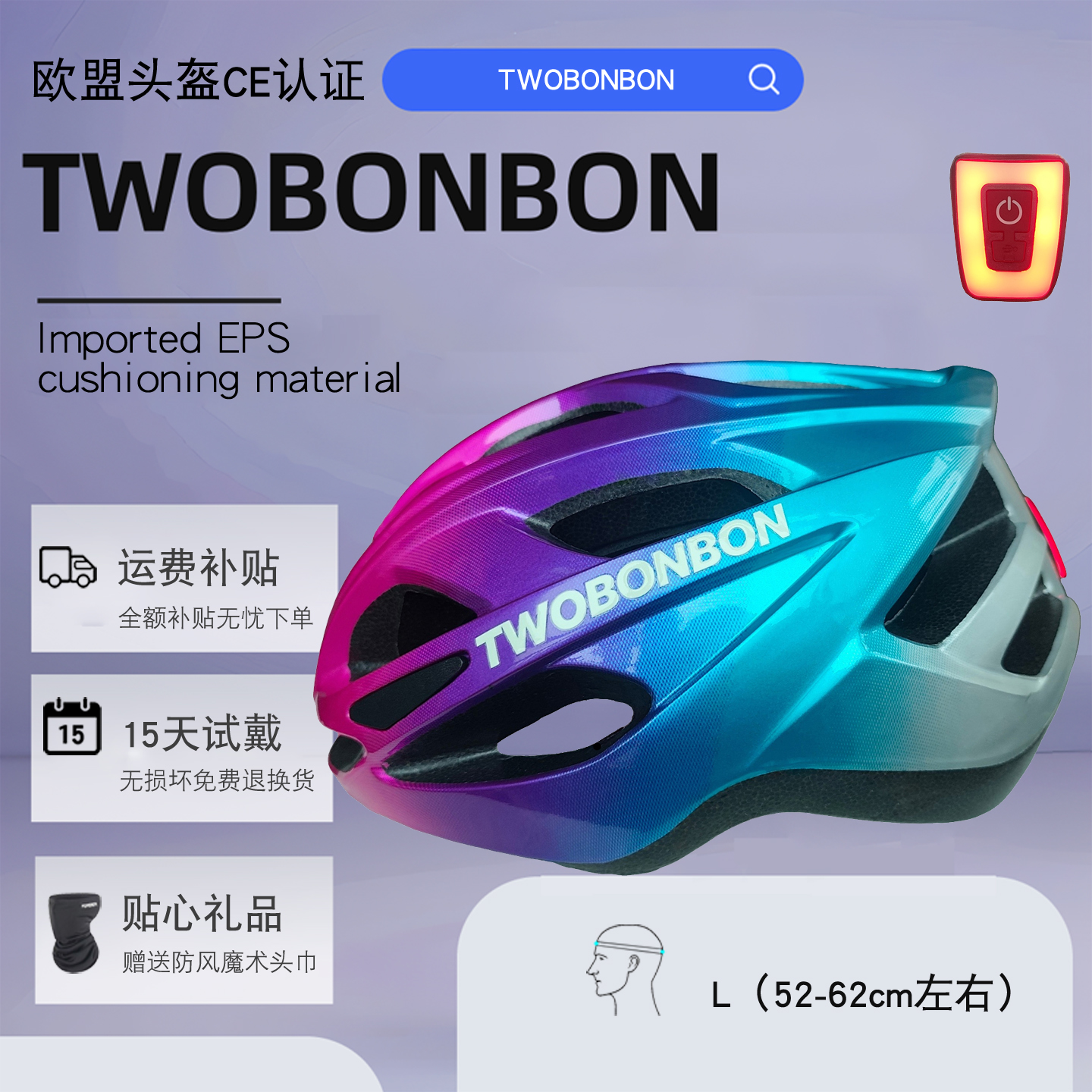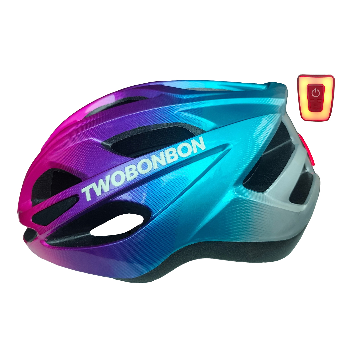 TWOBONBON户外运动安全防风滑板陆地冲浪板轮滑自行车骑行头盔渐变色带可充电尾灯